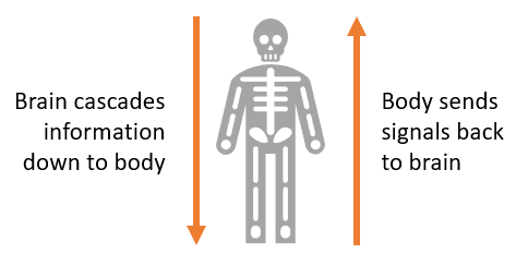 In response to stimuli, the brain cascades these electrical responses, chemicals and hormones to the body through the nervous system. And, in response to information the body is processing (like sound, touch, pain, taste, etc.) the body sends information back to the brain. This becomes a whole cycle of feedback.