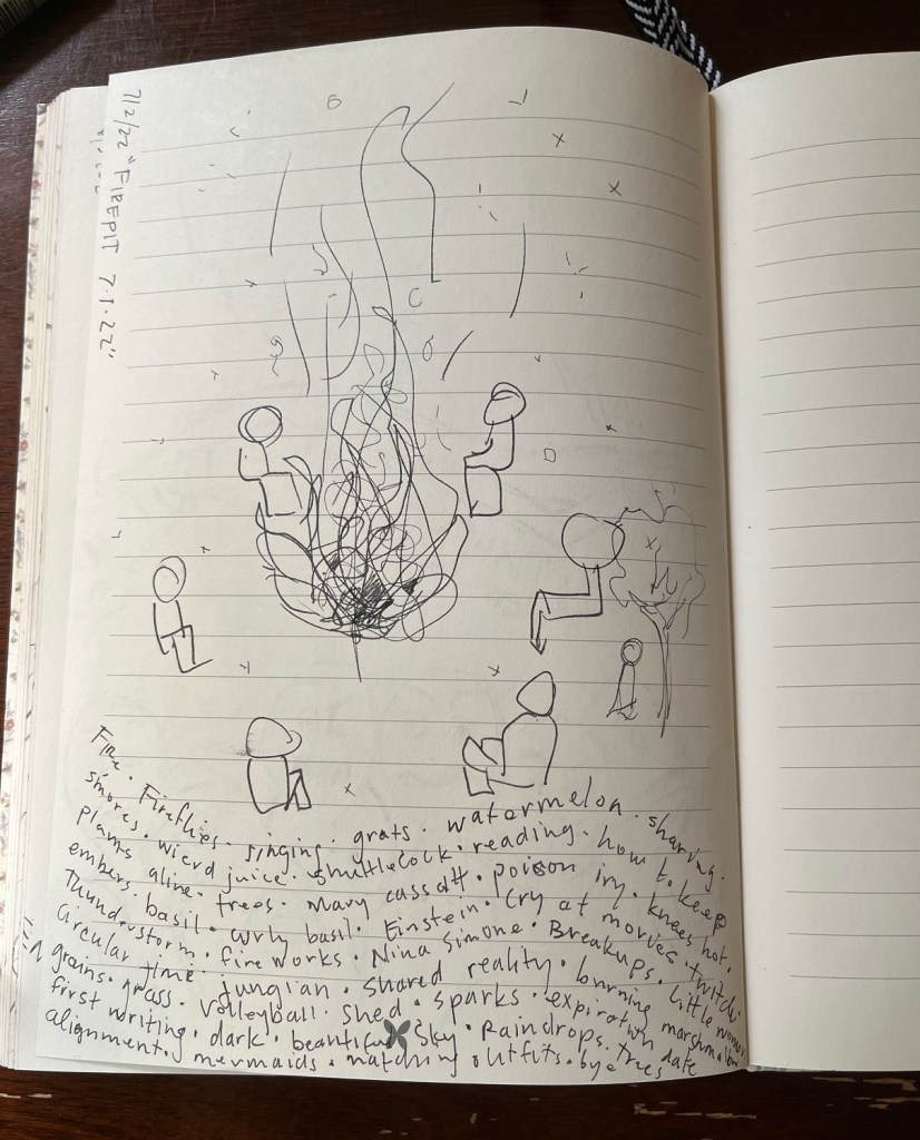 Four months later, I only remember a few of the things on the drawing and I didn’t even remember the night until I was flipping through my journal and found the drawing.